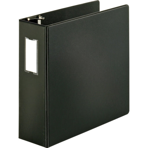 Business Source Slanted D-ring Binders - 4" Binder Capacity - 3 x D-Ring Fastener(s) - 2 Internal Pocket(s) - Chipboard, Polypropylene - Black - PV...
