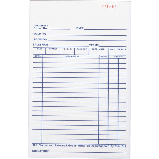 Blueline Invoice Book - 50 Sheet(s) - 2 PartCarbonless Copy - 8" x 5 3/8" Sheet Size - Blue Cover - 1 Each Catalog Page: 394 General Information Ma...