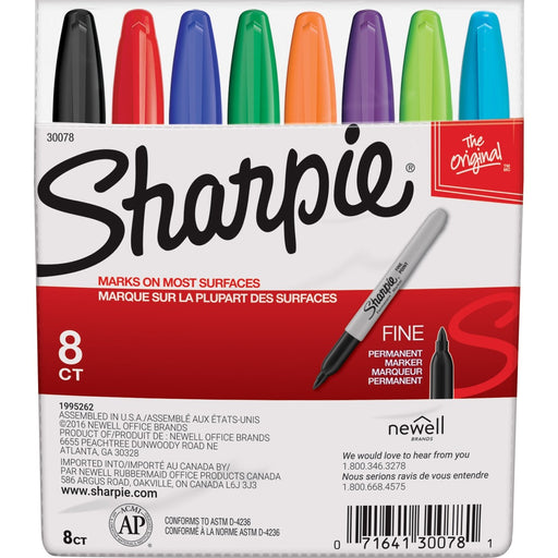 Sharpie Fine Point Permanent Marker - Fine Marker Point - Black, Blue, Brown, Green, Orange, Purple, Red, Yellow Alcohol Based Ink - 8 / Set Catalo...