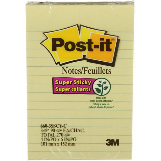 Post-it® Super Sticky Ruled Adhesive Notes - 4" x 6" - Rectangle - Ruled - Canary Yellow - 3 / Pack General Information Manufacturer:3MManufacture...