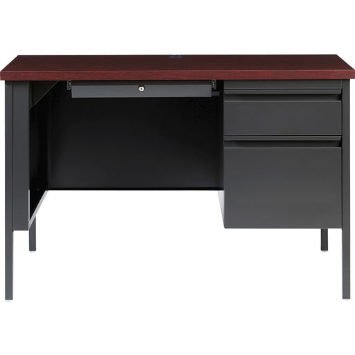 Lorell Fortress Series Mahogany Laminate Top Desk - 45.5" x 24" x 29.5" , 1.1" Top - Box Drawer(s), File Drawer(s) - Single Pedestal on Right Side ...