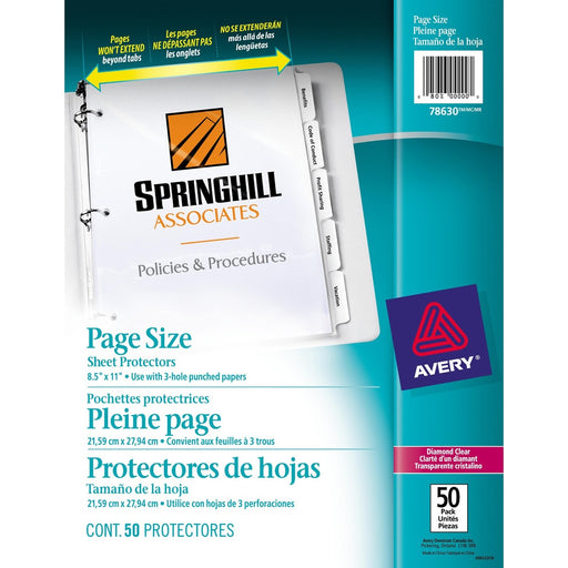 Avery® Page Size Sheet Protector - For Letter 8 1/2" x 11" Sheet - Ring Binder - Rectangular - Diamond Clear - Polypropylene - 50 / Pack Catalog Pa...