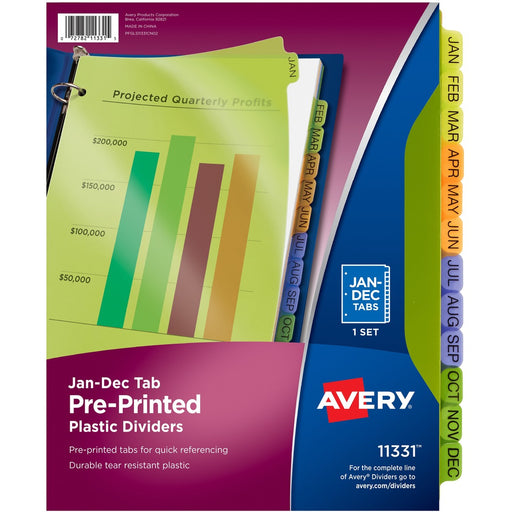 Avery® Preprinted Plastic Dividers, 12-Tab Set, Jan.-Dec., Multicolor (11331) - Jan-Dec - 12 Tab(s)/Set - 8.50" Divider Width x 11" Divider Length ...