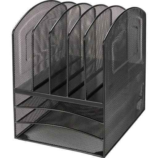 Lorell Steel Mesh 3/5 Tray Desktop Organizer - 5 Compartment(s) - 13" Height x 9.5" Width x 11.4" Depth - Black - Steel - 1Each Catalog Page: 469 G...