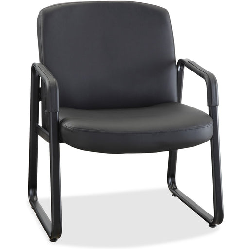 Lorell Big and Tall Leather Guest Chair - Leather, Plywood Seat - Leather, Plywood Back - Powder Coated Metal Frame - Sled Base - Black - 26.5" Wid...