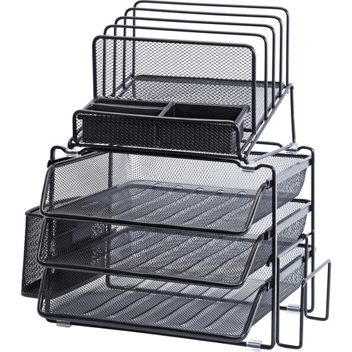 Lorell Divided 4-tier Desktop Organizer - 4 Tier(s) - 15.8" Height x 12.9" Width x 14.4" Depth - Desktop - Black - Plastic, Mesh - 1Each Catalog Pa...