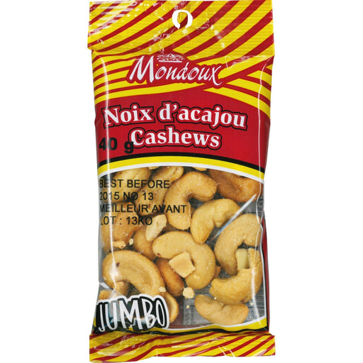 Mondoux Salted Jumbo Cashew Nuts - Salty - 1 Serving Bag - 40 g - 1 Pack Catalog Page: 108 General Information Manufacturer:Les Bonbons MondouxManu...