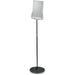Sign holder features a clear acrylic, letter-size panel with two viewing sides and telescopic pole that adjusts from 40" to 60" high including panel. View inserted sign from the front or back. Ideal for lobbies, showrooms and trade fairs. Removable panel is open on three sides for fast insertion and removal of letter-size sheets. Vertical panel can be tilted positive or negative 14 degrees for the best display angle. Sign holder also features a stable round base.