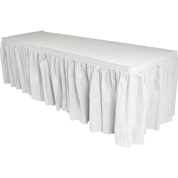 Genuine Joe Nonwoven Table Skirts - 14 ft (4267.20 mm) Length - Adhesive Backing - Polyester - White - 1 Each