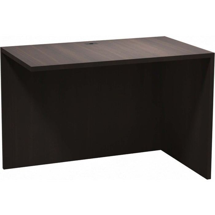 This nonhanded return shell is part of the Heartwood Innovations Laminate Series that combines intelligent design and function with lasting durability. The series offers high-quality construction with an abundance of components so you can make the perfect choice for your office or work space. Evening Zen Laminate is water-resistant, scratch-resistant, dent-resistant and burn-resistant and requires little maintenance to keep it looking great. Durable, premium, thermally fused, woodgrain laminate tops 1" thick, 45 lb. industrial particleboard core. Tough, 3mm thick, PVC color-matched edging provides excellent wear-resistance. A Titanium highlight strip is inserted below the top for a stylish accent. The 41-1/2" wide return shell with full modesty panel can also be used as a bridge connector. Leveling glides keep the return even on uneven surfaces.