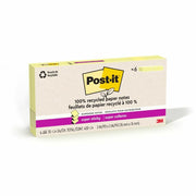 | Marketing Information | Post-it Recycled Super Sticky Dispenser Notes help support a better future by using recycled paper and feature a unique adhesive with twice the sticking power so your notes will stick securely to more surfaces. Stick your notes where they'll really get noticed - like monitors, windows, doors and walls. Move your notes with you throughout the day. Accordion-style notes are specially designed to work in Post-it Note Dispensers. With these notes, you'll always have a note nearby to capture great ideas. The 3" x 3" size is perfect for reminders or a short to-do list. Super Sticky Notes hold longer and stronger than original notes yet remove cleanly. Super Sticky Post-it Notes and their paperboard packaging are recyclable, and the paper in Post-it Notes is sourced from certified, renewable and responsibly managed forests. |
