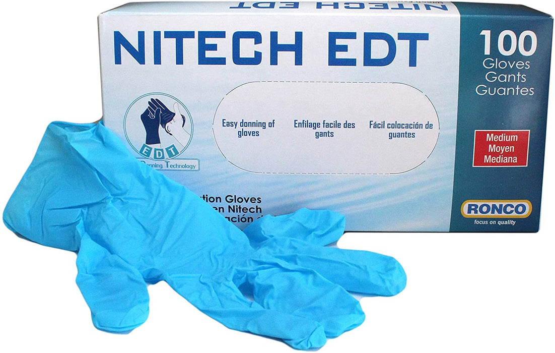 Ronco Nitech Nitrile Examination Gloves (5 Mil) Powder-Free Latex-Free 100/Box
