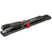 Long-reach stapler offers the unique capability to reach an expansive 12" so you have a staple long enough to fasten a booklet or an area of a document other than the corners. Great for high-volume commercial settings, studio environments, open office areas, special projects and more. Customize the 12" reach with the adjustable paper guide that includes both standard and metric measurements. All-metal construction means you can easily and consistently staple up to 20 sheets with standard, 1/4" staples. The innovative No-Jam technology eliminates frustrating staple jams. Nonskid rubber feet keep the stapler in place during high-volume document stapling. Versatile Dual Clinch system easily adjusts with just a simple twist for either permanent or temporary stapling. Full-strip stapler offers a 210-staple capacity.