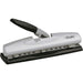 High-capacity desktop punch offers a wide-grip, soft-touch lever that makes punching 50 percent easier. Hole punch drills through 20 sheets of 20 lb. paper to create two to seven 9/32" round holes. Three punch heads are fully adjustable from underneath. Semi-adjustable punch accepts up to seven punch heads. Lever locks down. Desktop punch features durable all-metal construction, easy-glide chip holder and multiple-hole placements.